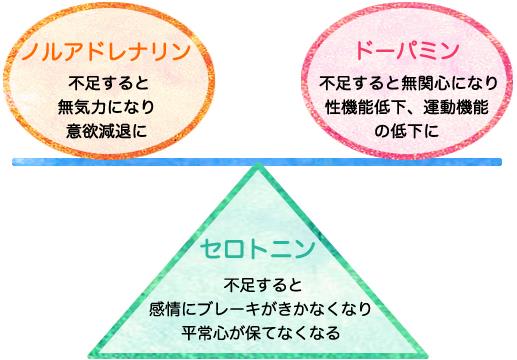 そこでノルアドレナリン、ドーパミン、セロトニンの3つのホルモンです。